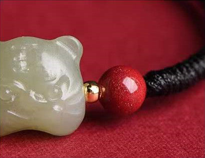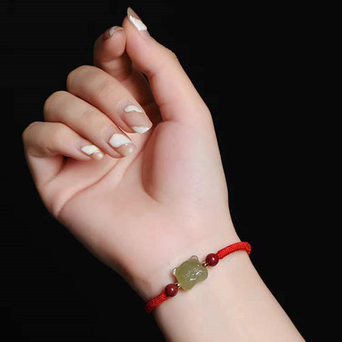 Fengshui Tiger Natural Green Jade Red String Bracelet-2022 Tiger Year