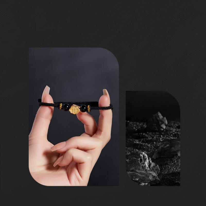 This Sterling Silver & Obsidian Fortune Bracelet blends traditional elegance with modern minimalism. Featuring a “Fu” (fortune) character charm in 999 sterling silver, paired with natural black obsidian beads and handwoven cords, the design embodies blessings, strength, and timeless style.