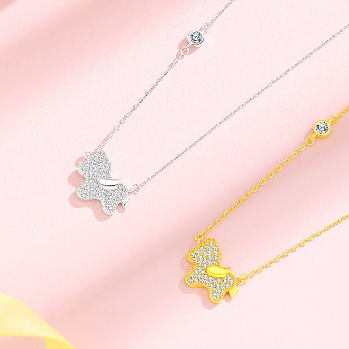 The pendant features a petite horse silhouette, fully embellished with shimmering pavé stones that sparkle like aspirations coming to life. Light, refined, and versatile, it pairs effortlessly with everyday outfits while carrying a deeper meaning close to your heart.