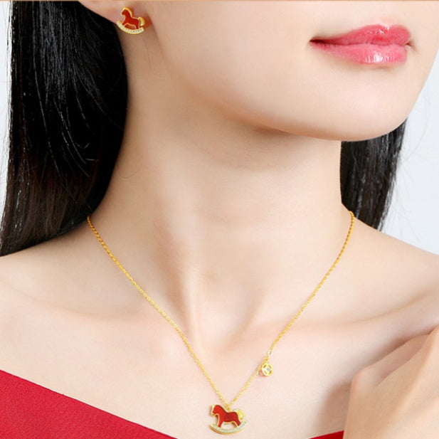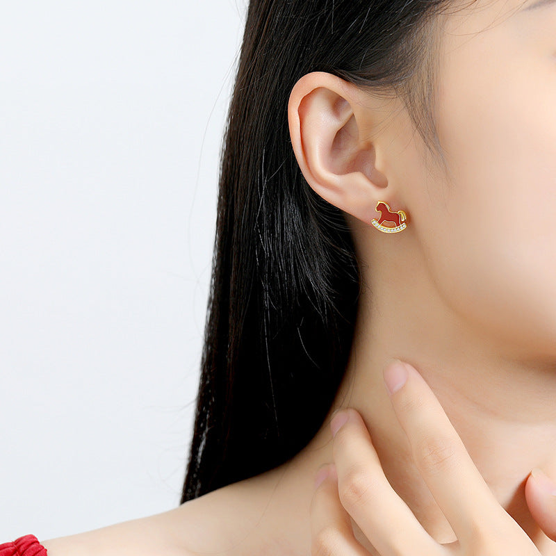Celebrate the 2026 Year of the Horse with these elegant Red Agate Lucky Horse Earrings, designed to bring fortune, success, and positive energy for the year ahead. Handcrafted with 925 sterling silver and vibrant red agate, each earring features a playful rocking horse — a timeless symbol of speed, courage, and achievement. The radiant red tone represents prosperity and joy, making it the perfect accessory to welcome the new year with confidence and charm.