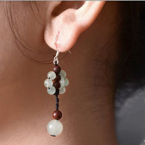 Green Jade Earrings-Auspicious Sandalwood Beads