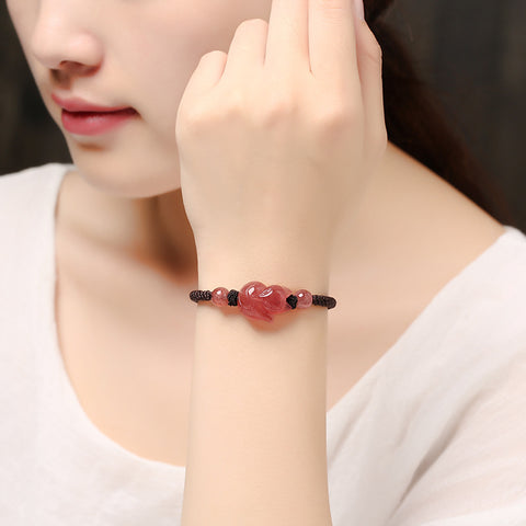 Strawberry Crystal Fox Bracelet-Red String Fengshui Bead