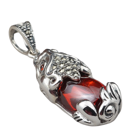 - 1 x 925 Silver Red Garnet Pixiu Lucky Bracelet