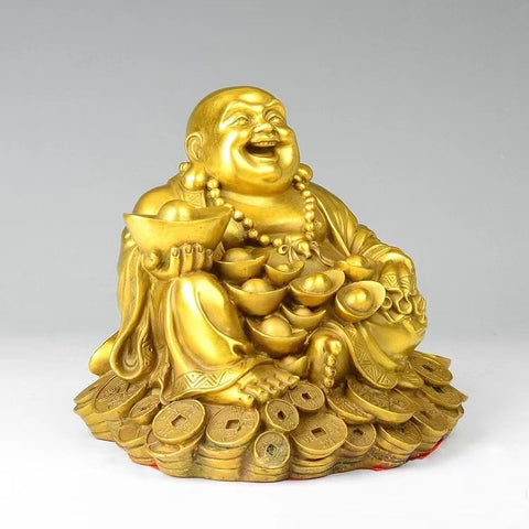 Laughing Buddha Statue-Luck Coins and Carrying Ingot