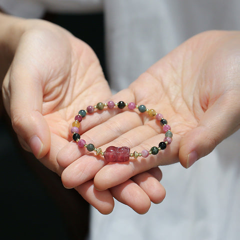 Strawberry Crystal Pixiu Tourmaline Bead Bracelet