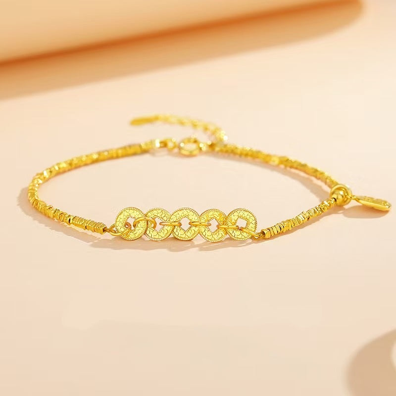 This bracelet draws inspiration from the Five Emperor Coins , which are traditionally believed to represent prosperity, good fortune, and protection in Feng Shui.
