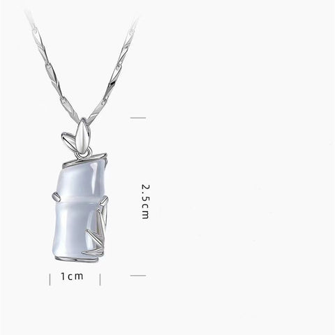 Moon Stone Bamboo Pendant 925 Sterling Silver Necklace