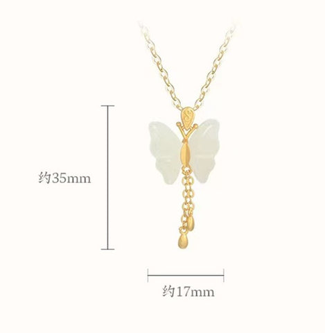 Natural Hetian Jade Butterfly Lucky Pendant Necklace