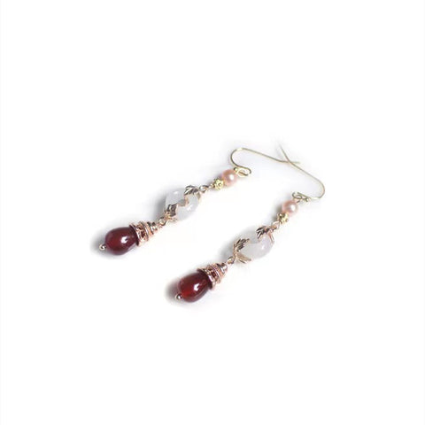 Red Agate Pearl Earrings