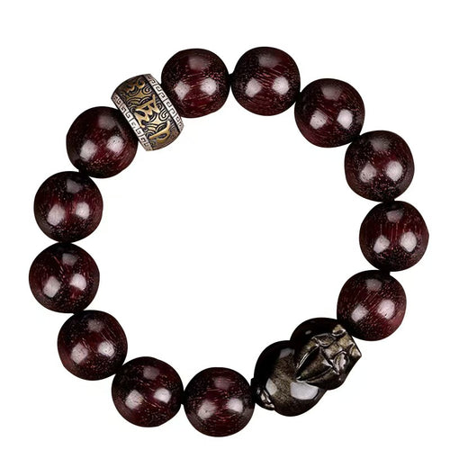 Red Sandalwood Bead Gold Obsidian Pixiu Bracelet -Attract Wealth