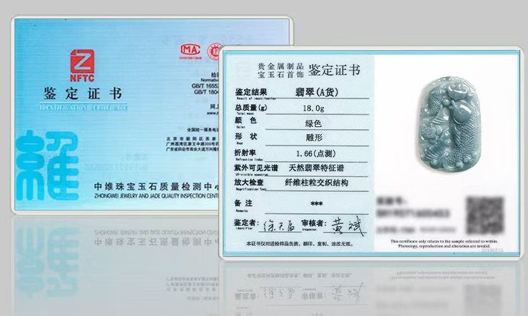 - Material: Natural Grade A Jade/Certification Marks: CAL, CMA, and CNAS/CNAL