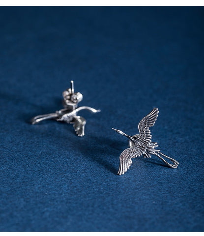 Fengshui Crane 925 Sterling Silver Stud Earrings