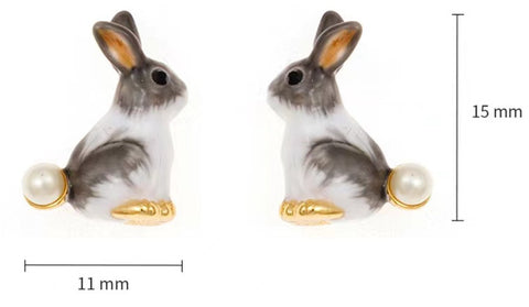 Natural Pearl Enamel Rabbit Lucky Earrings