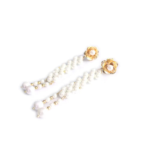 Natural Pearl Plum Flower Earrings