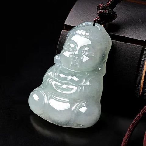 Gautama Buddha Protection Pendant-Ice White Jade-Grade A Jade
