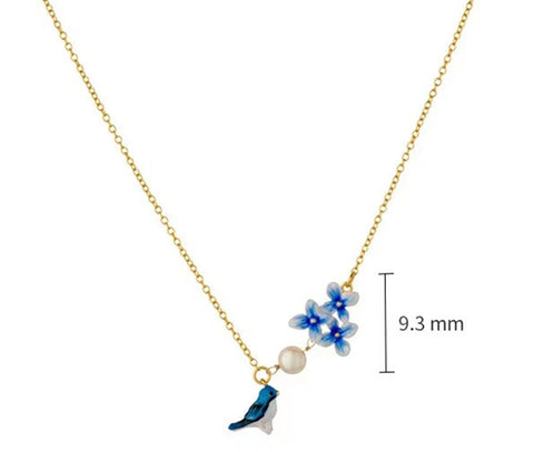 Enamel Magpie Pearl Lucky Pendant Necklace