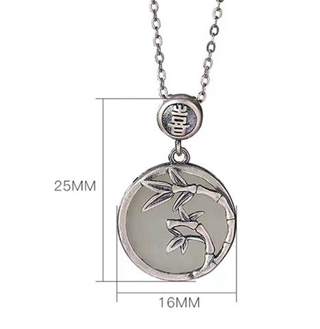 Natural Hetian Jade 925 Silver Bamboo Pendant Necklace