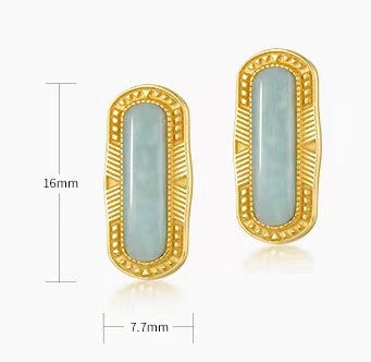 Peace Shield Jade 925 Silver 10K Gold Plated Earrings